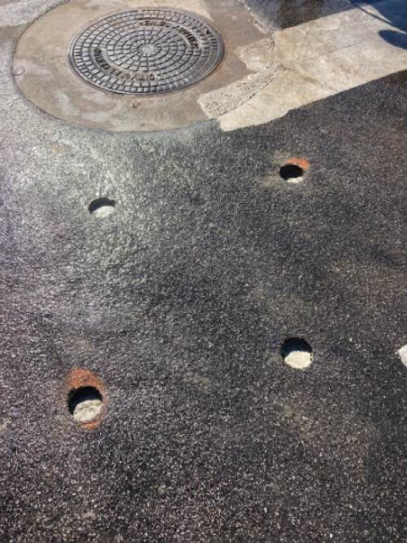 manhole’s integrity could be restored by building up high-strength concrete to original specifications and coating the interior wall. Rather than removing the surrounding pavement and replacing the manhole, they consulted with Cell-Crete Corp and decided to use Backfill Grouting to fill the void. Using core holes at pavement level, the team injected 19 cubic yards of 27pcf lightweight cellular concrete into the void, with several other core holes serving as vents. Once the grout had set, the core holes were patched, and normal traffic flow resumed the next day.