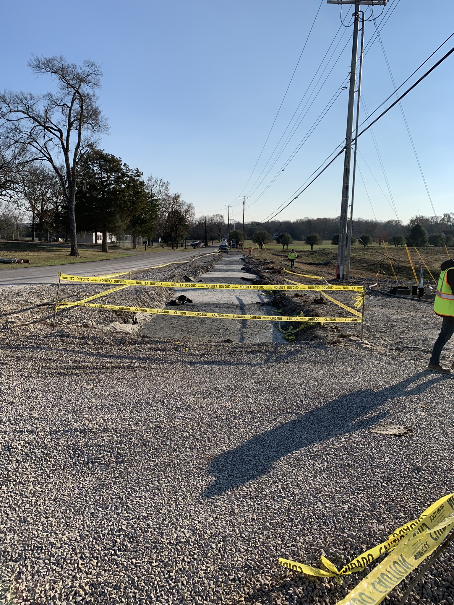 The project will include the addition of a turn lane to accommodate the new development. The current conditions of Gladeville Road consists of a two-lane asphalt paved roadway with existing underground facilities that run parallel to the roadway. Buried utilities within the limits of the proposed improvements includes an 18” ductile-iron water line.