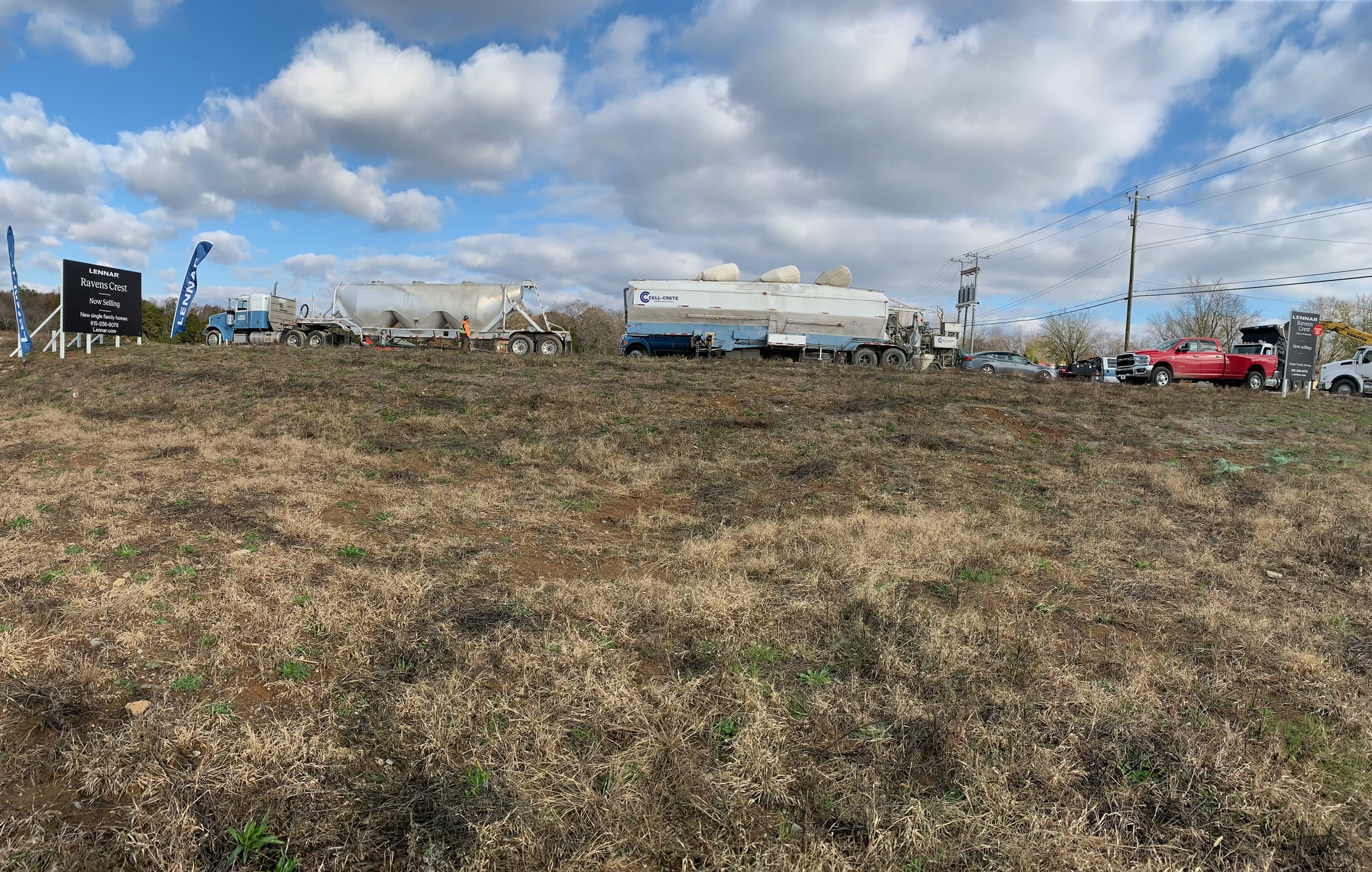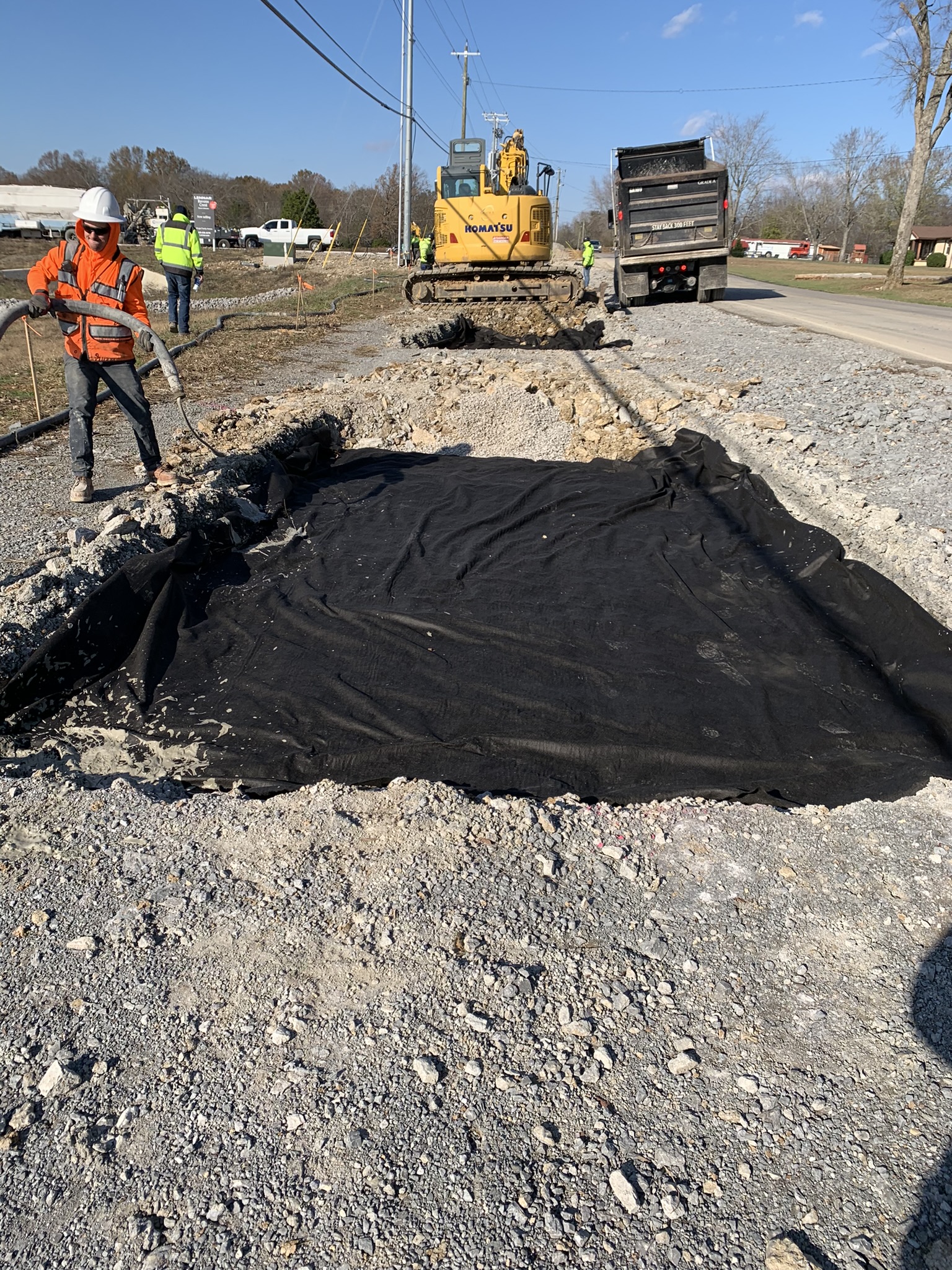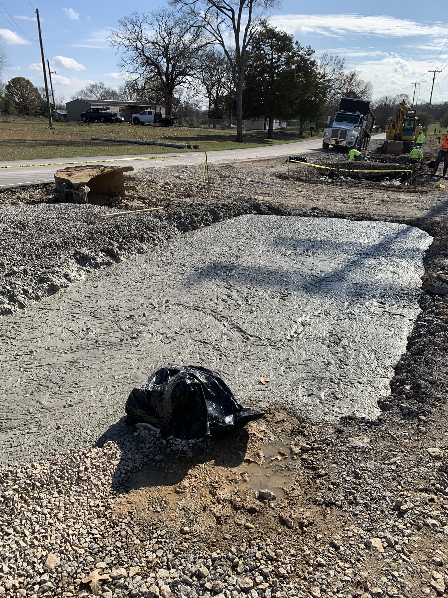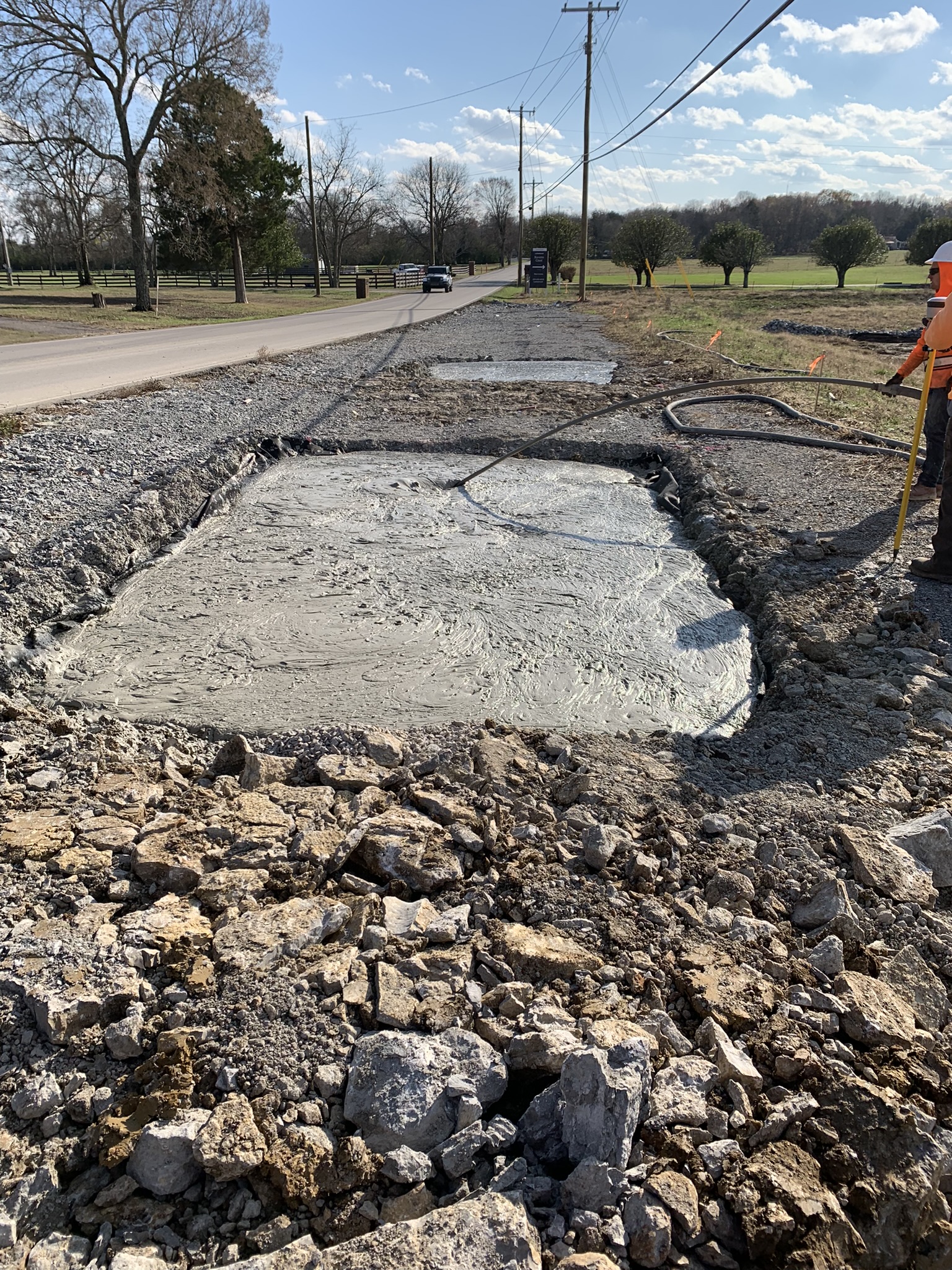 To protect the existing water line, Lightweight cellular concrete was placed as one of the layers for the additional fill material to reduce the loads imposed by the weight of the additional fill and traveling traffic. Cell-Crete poured roughly 150 CY of Class II (30 PCF) of LCC along the turn lane widening.