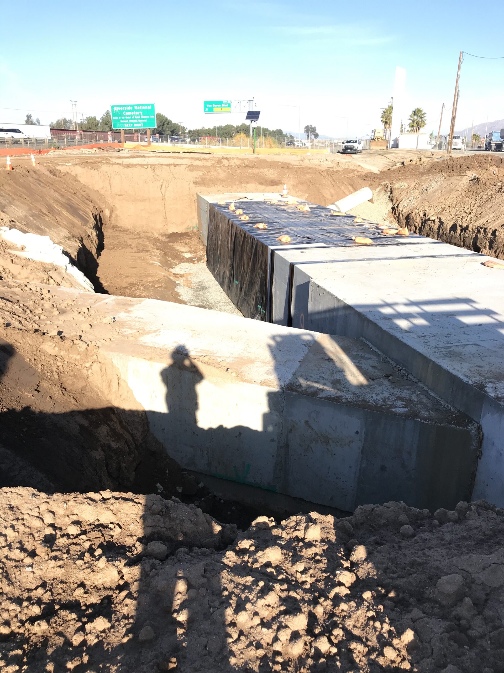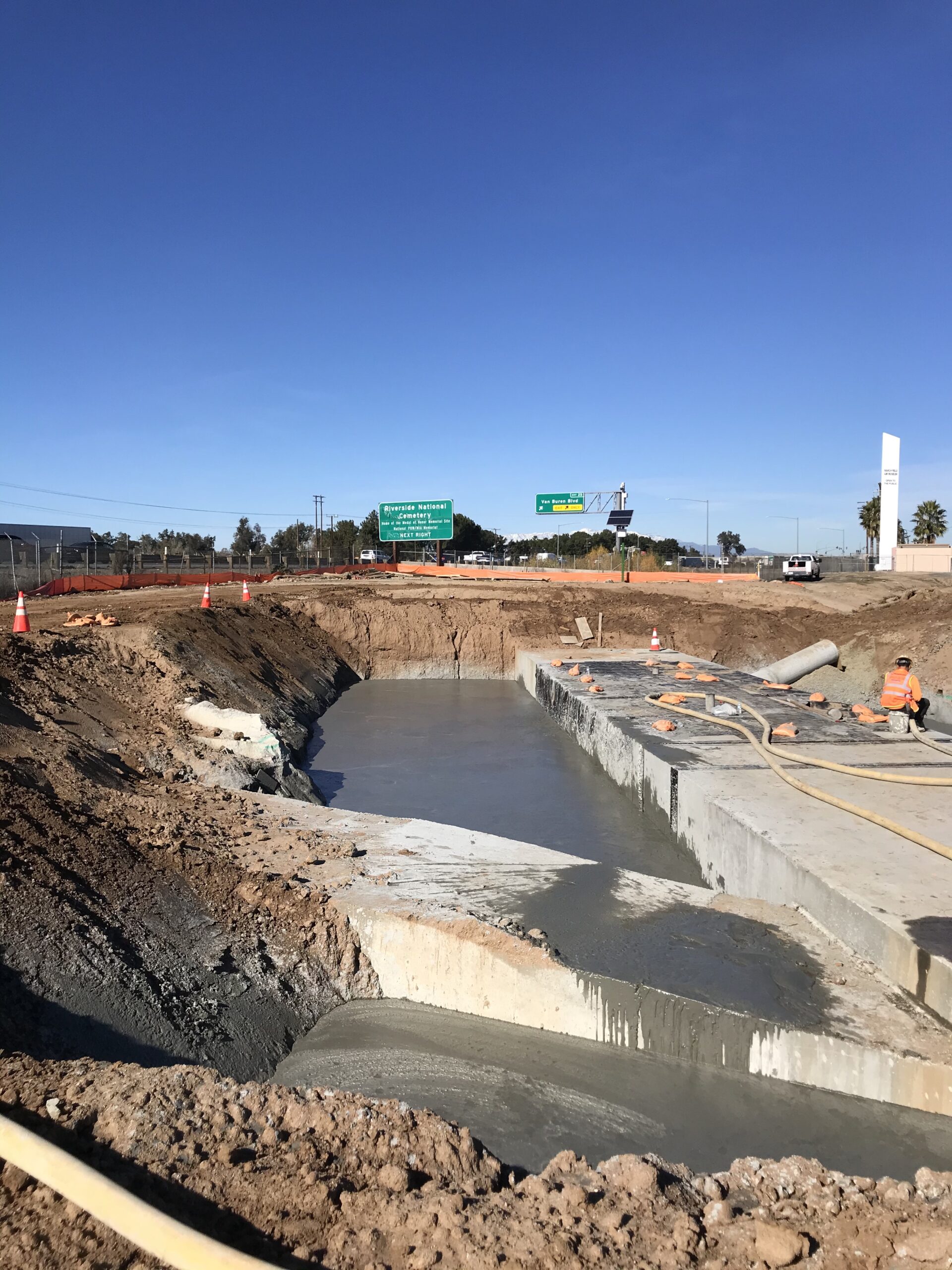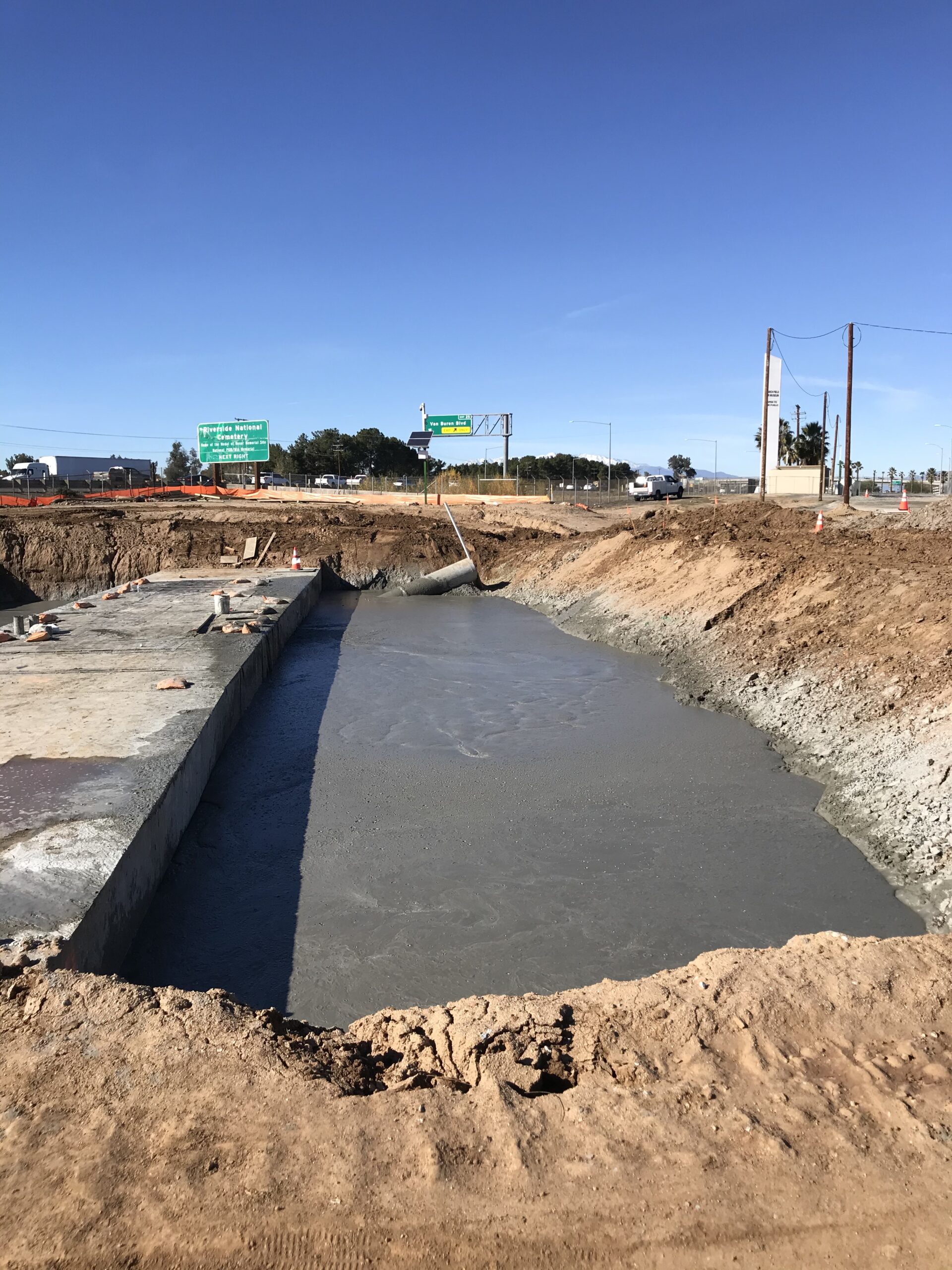 Boudreau Pipeline Corporation installed hundreds of feet of 7ft x 14f reinforced concrete box (RCB) near the March Air Force Museum located in Riverside, Ca. A lightweight material that would reduce surcharging and settlement was required for the backfill along the RCB over a 100 ft section.