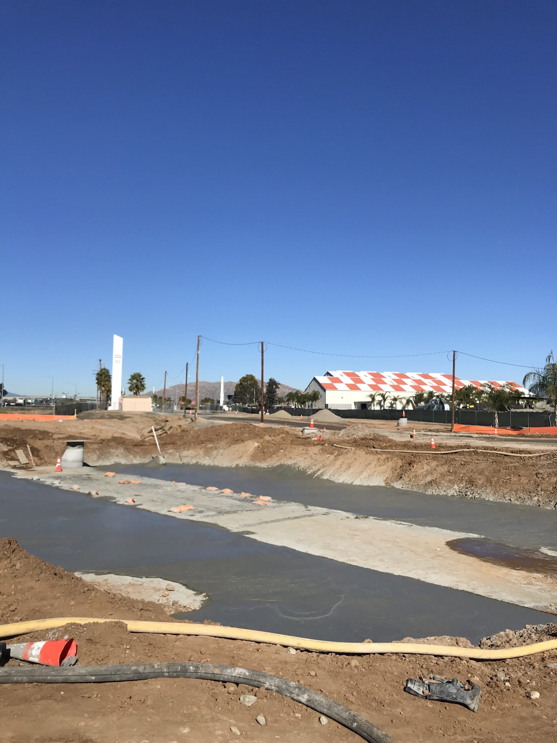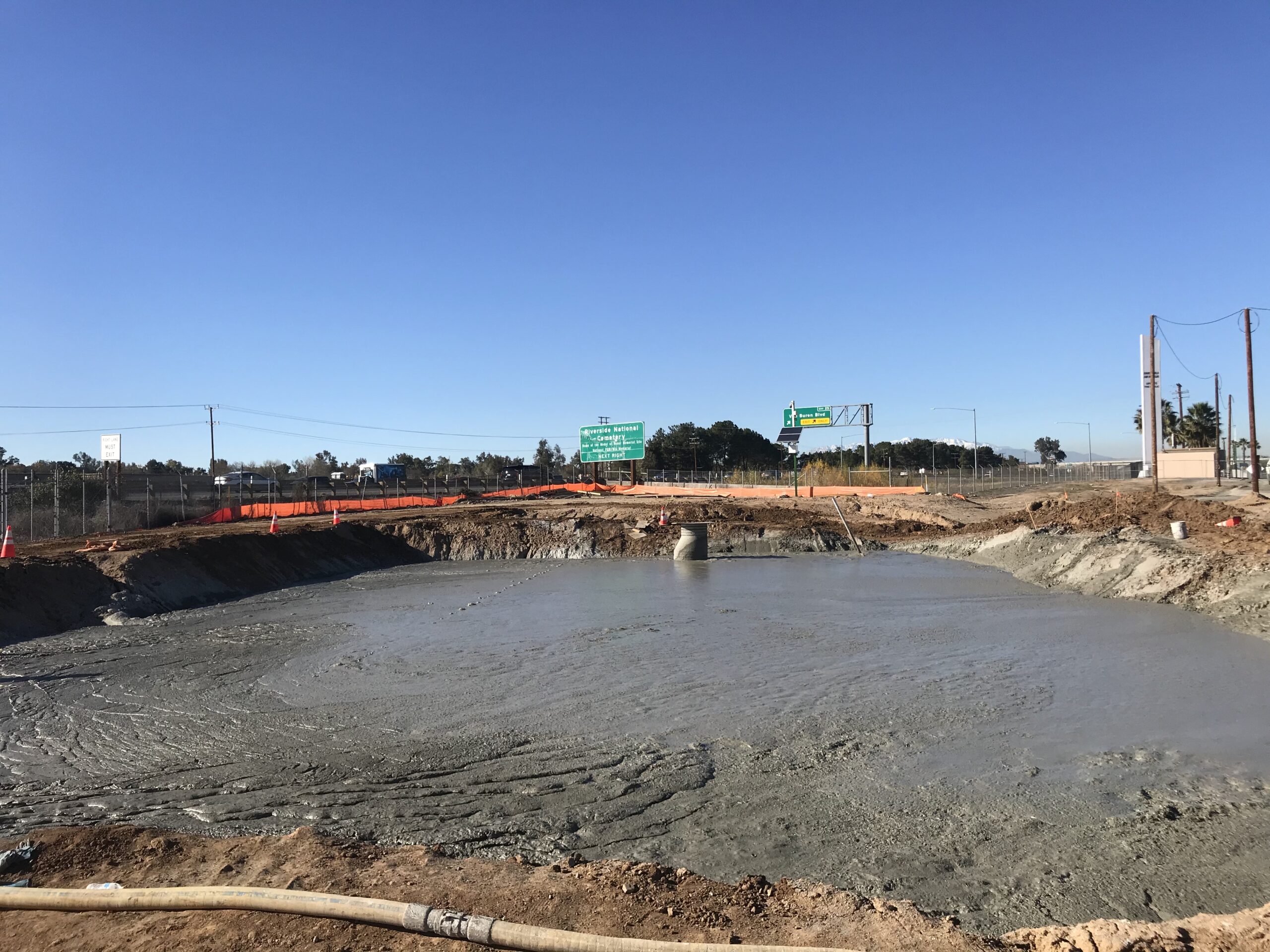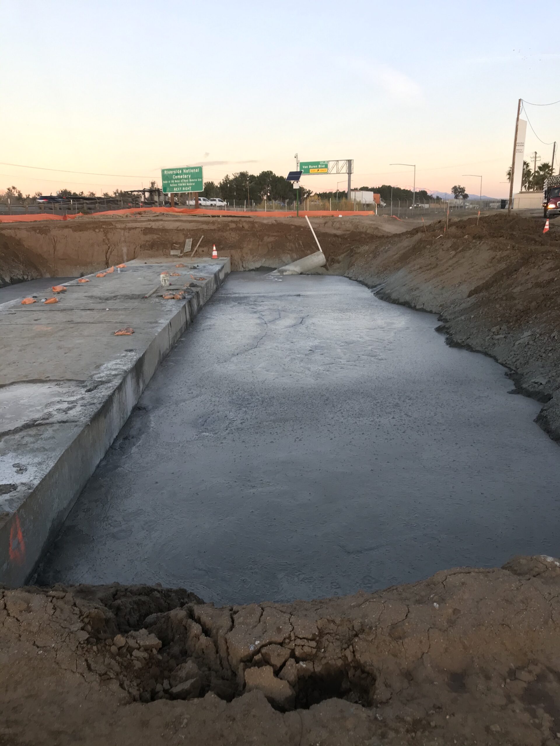 Boudreau Pipeline Corporation installed hundreds of feet of 7ft x 14f reinforced concrete box (RCB) near the March Air Force Museum located in Riverside, Ca. A lightweight material that would reduce surcharging and settlement was required for the backfill along the RCB over a 100 ft section.