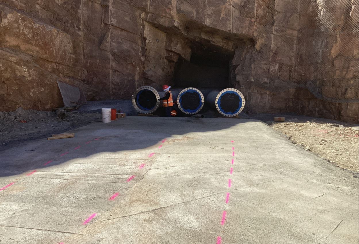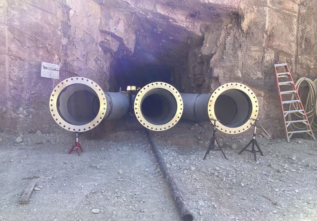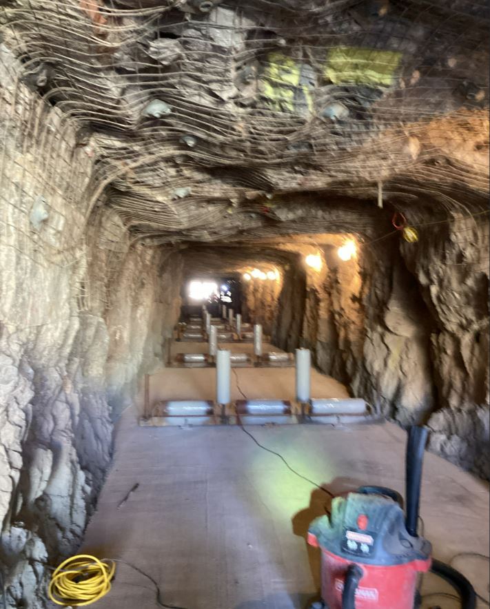 An irregular rock mined annular space was needed to be filled, the contractor installed feed lines at the surface to be able to inject cellular concrete into the void space and complete the annular backfill scope of work. Class IV material was chosen for this scope of work and the work as completed in 2 lifts.