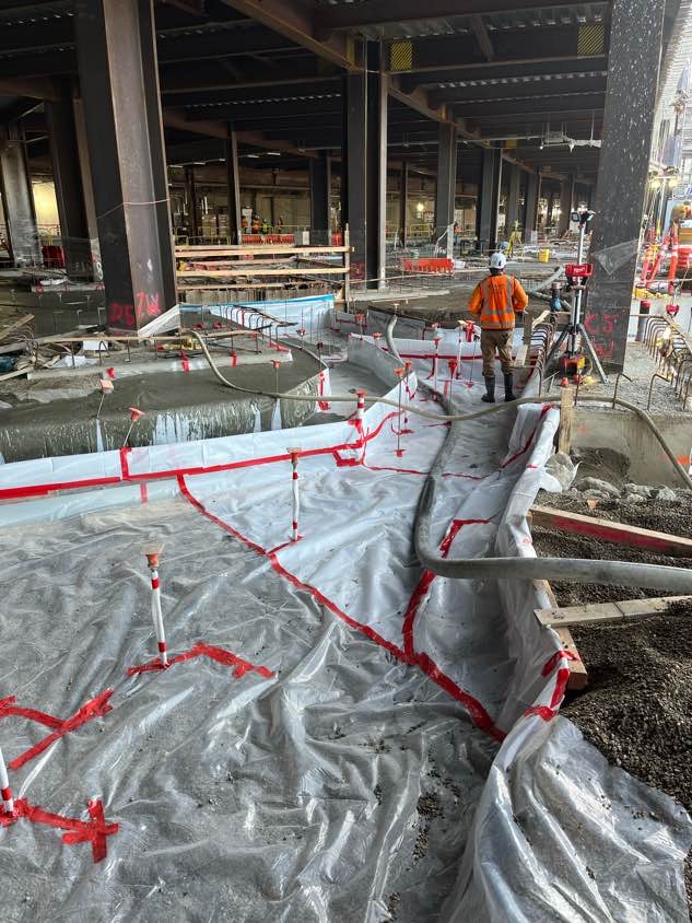 To address this, cellular concrete was selected as the ideal solution. Its unique properties allow it to flow easily over long distances and be placed efficiently through a concrete hose, ensuring that the fill could be delivered precisely where needed without disrupting airport operations. 1,000CY of class III material were placed in just 2 days creating minimal impact to ongoing construction trades and passengers.