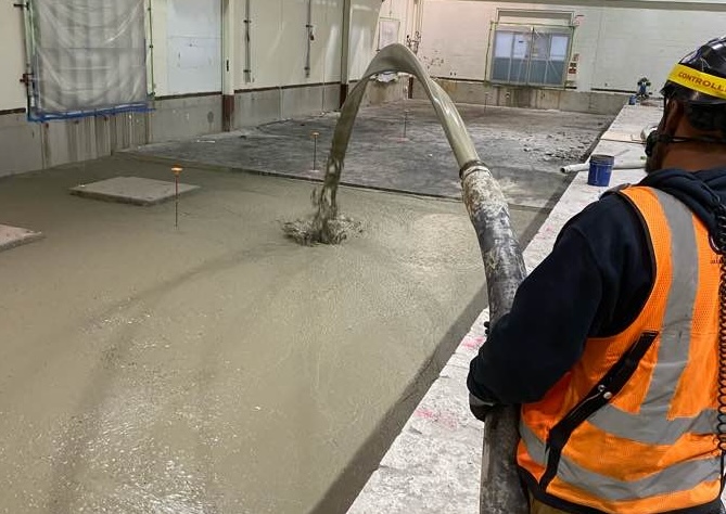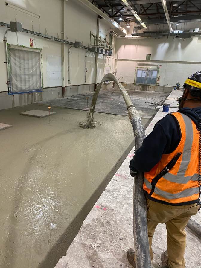 The primary challenge involved filling large areas of the existing concrete slab while ensuring minimal disruption to the ongoing operations of the office space. Additionally, the distance to the point of placement was considerable, requiring a concrete hose to be run 1,000 feet, which posed logistical challenges. This lightweight concrete solution offered several significant advantages: