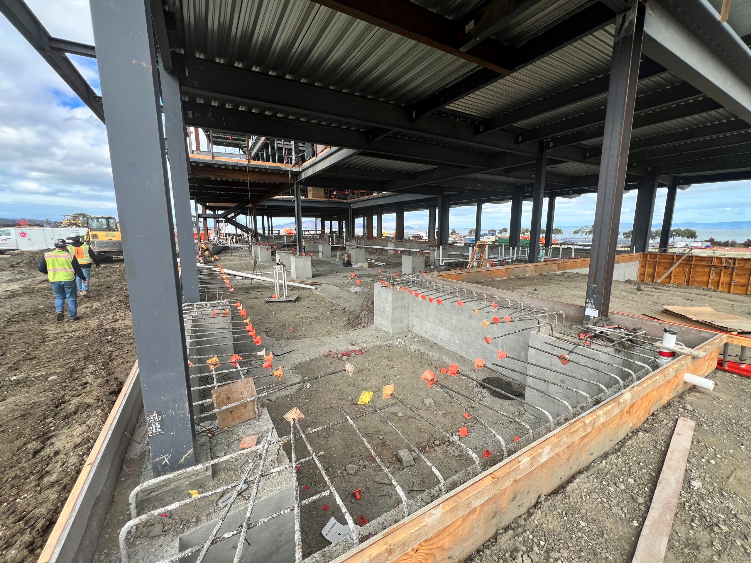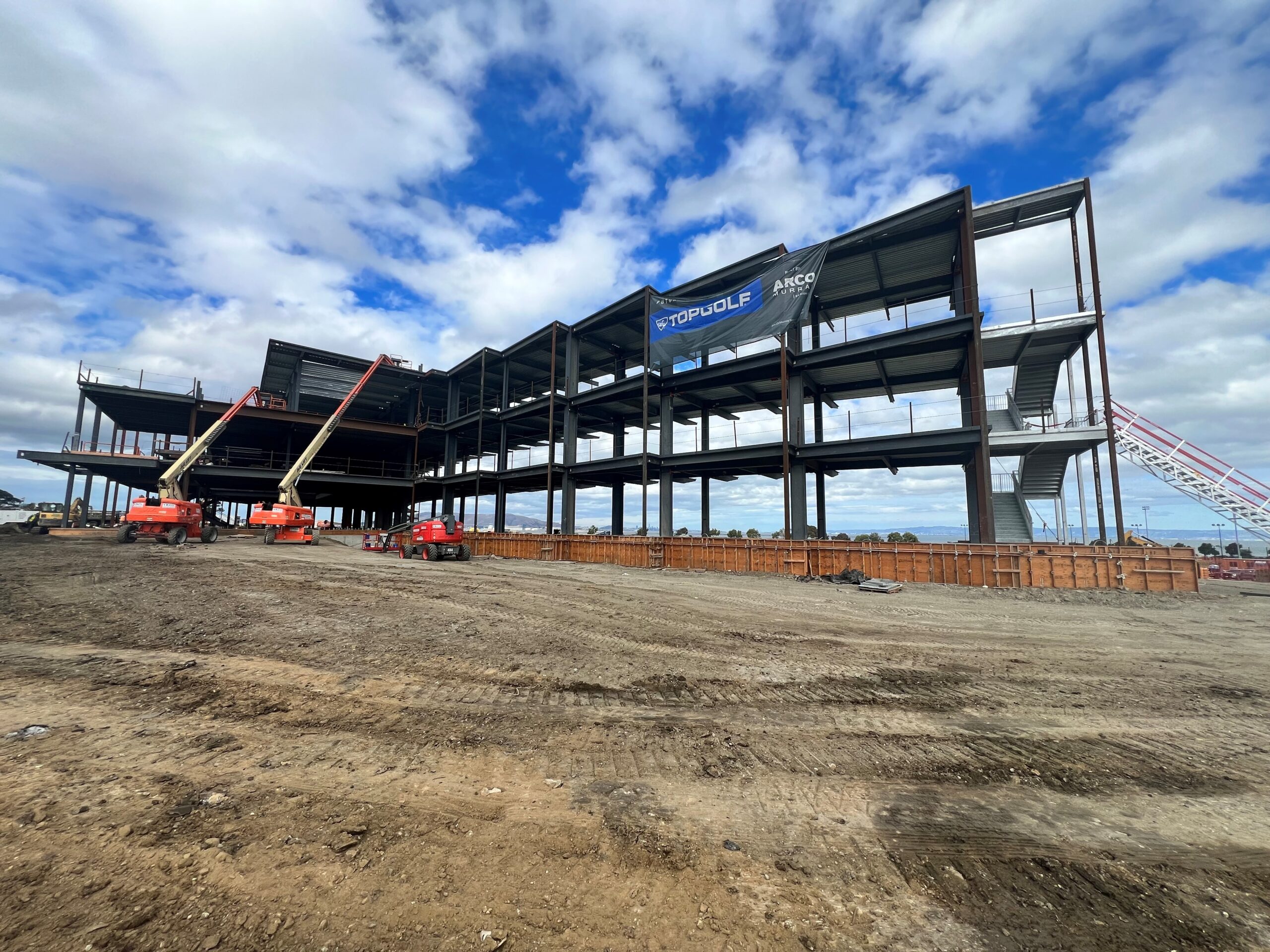 Introducing Burlingame’s exciting new Topgolf facility! This state-of-the-art, three-story building spans an impressive 71,000 square feet. It’s worth noting that the building will be elevated 5 feet above the ground due to its unique foundation design. Supported by 364 piles and grade beams, similar to a patio deck, this approach ensures a stable and durable build. What makes this location truly fascinating is that it was built on a former landfill.