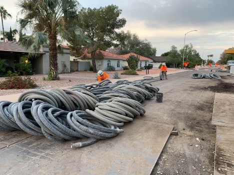 The Val Vista Rehabilitation involves a 3,920 LF Transmission Main pipeline for the City of Phoenix. The existing 96” diameter pre-stressed concrete cylinder pipe was slip-lined with a new 92” welded steel liner installed from a single access portal in the neighboring City of Mesa, AZ. The annular space was specified to be grouted with 300 PSI cellular concrete. Ground operations were completed in lifts. The single access portal made this job challenging since both directions would result in dead ends. This caused us to run cleanout hoses to washout at the portal site for both ends. The job was completed before the pipeline was critically scheduled back in service.
